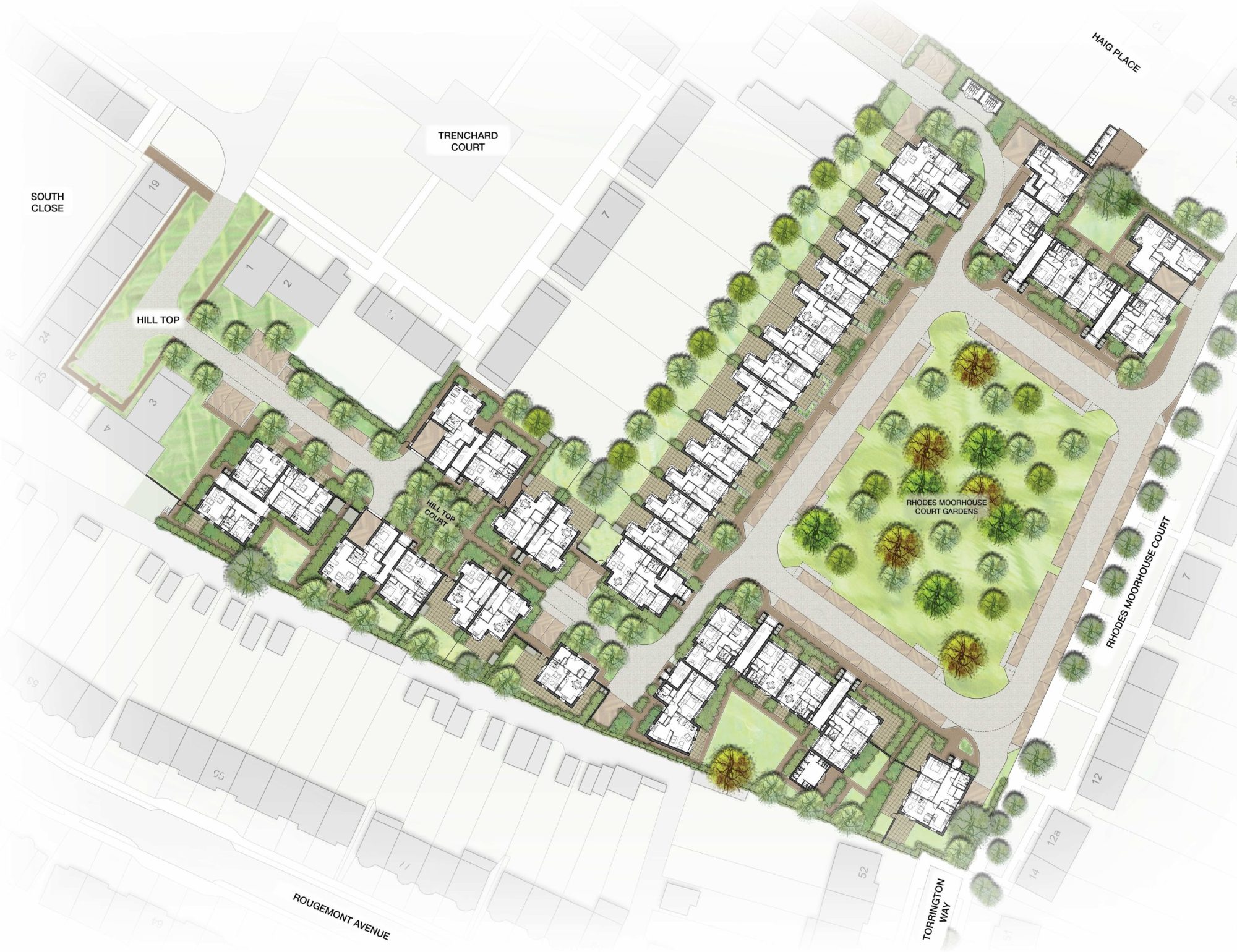 Following pre-application consultation with the London Borough of Merton the client decided to proceed with design development and a planning application for the largest of the sites identified in our masteplan, two isolated areas on the southern part of the estate, Rhodes Moorhouse Court Gardens and Hill Top Court.
