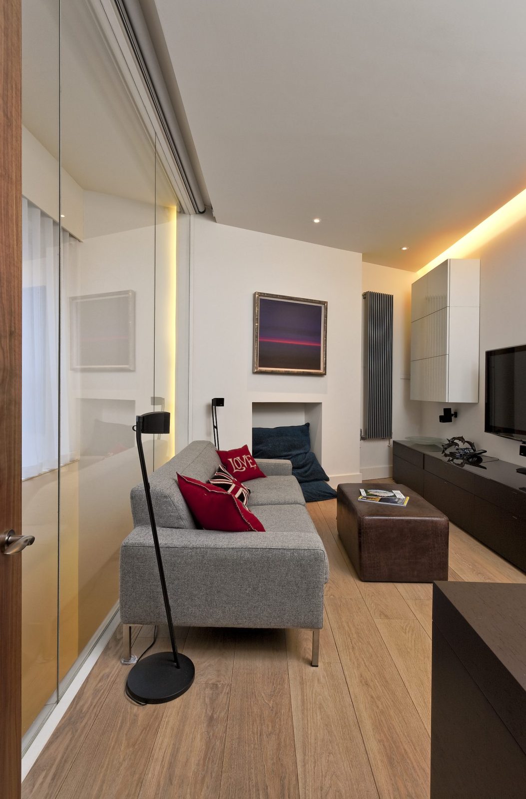 The floor area of this compact house was increased significantly through a cleverly thought out extension into the tiny rear lightwell, and through the insertion of an infill floor at ground floor level that took advantage of a double-height basement dining room.