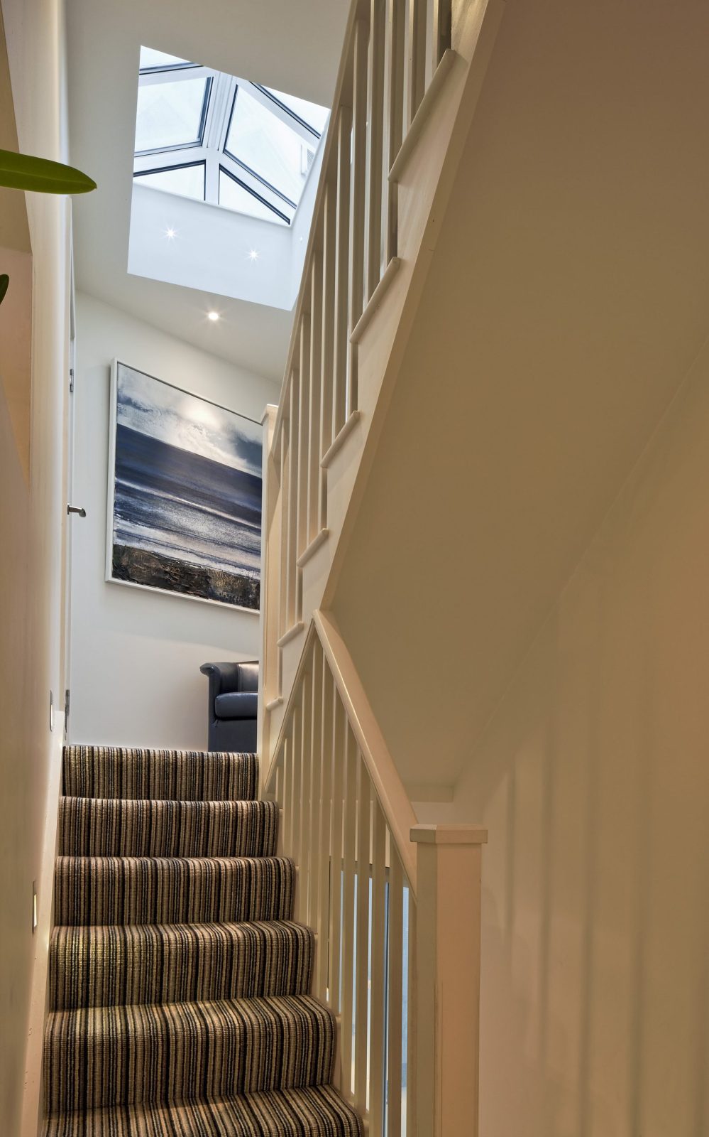 The rear extension elongates the staircase half-landings, and is top-lit with a generous lantern.