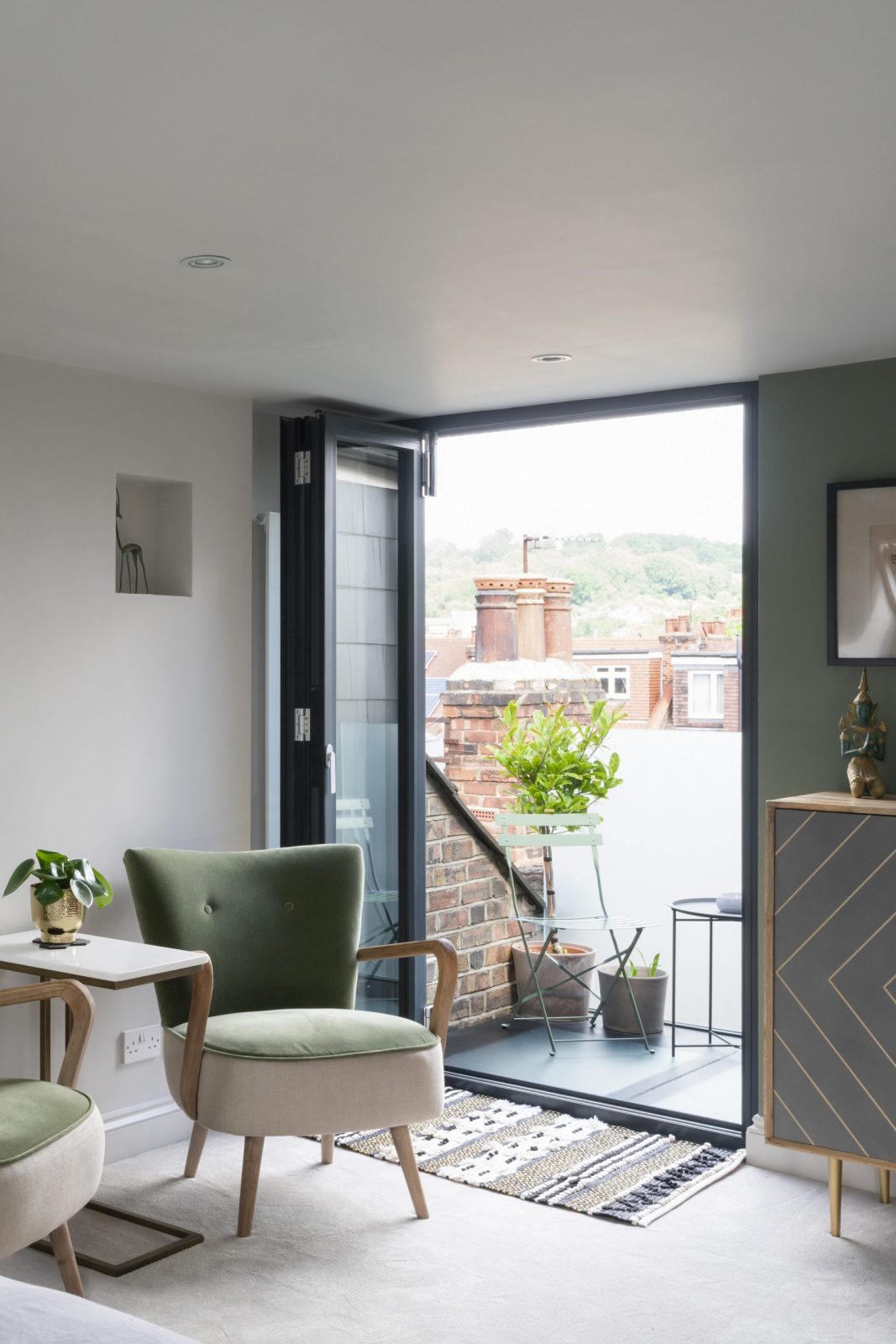 The dormer extension is contemporary in style and takes full advantage of the westerly high-level views to the Highgate and Muswell Hill hills through glazed slots and sliding doors that provide access to a roof terrace with 360° views to the surrounding hills.