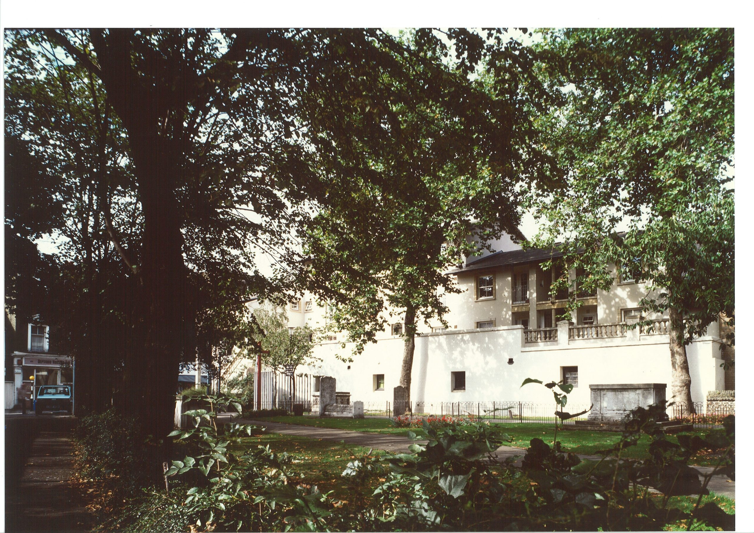 This prominent development is located at the entry to the churchyard close to Thomas Archer’s celebrated eighteenth-century English Baroque church of St. Paul’s, Deptford. The project introduced the idea of classical form and a classical vocabulary of details to relate to the traditions both of the church and of London street architecture.