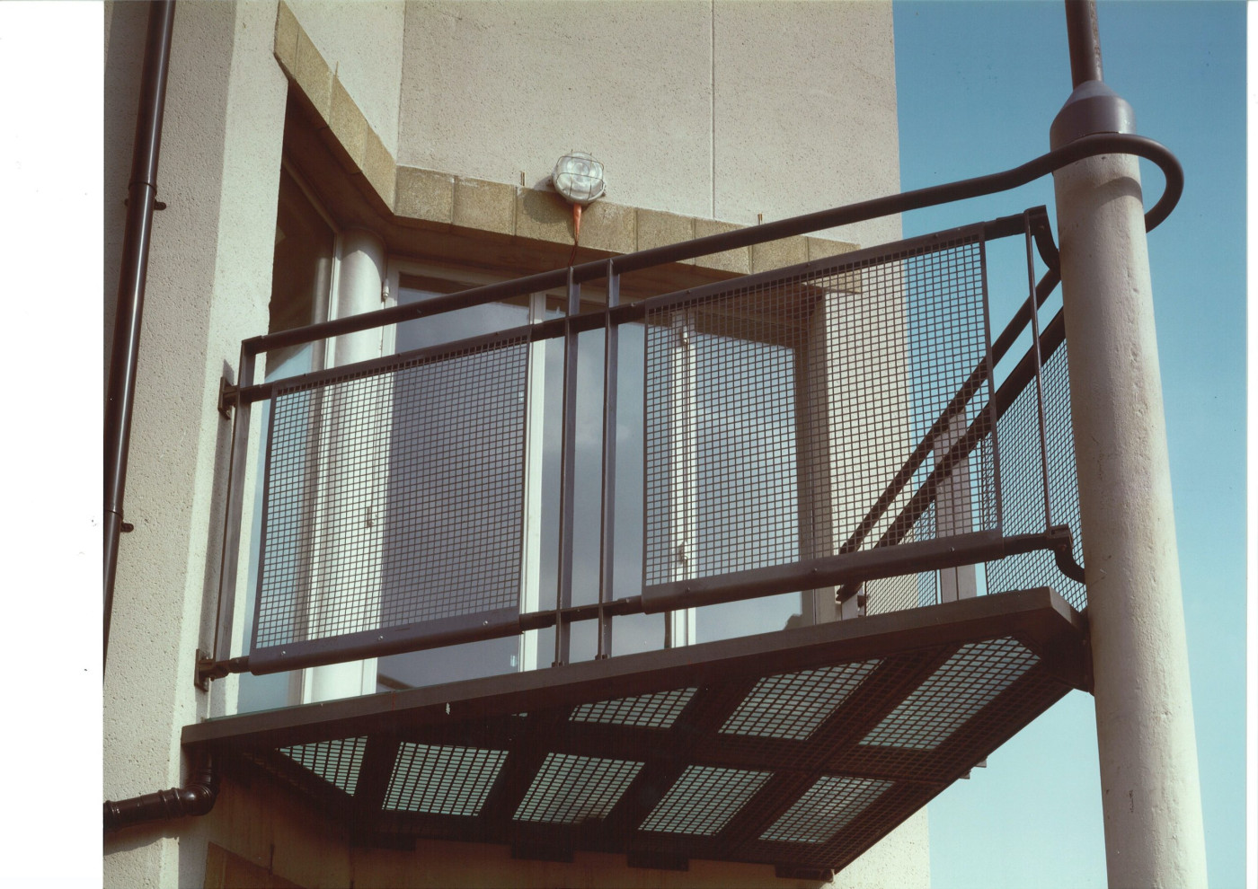 The scheme consisted of two blocks of flats, one facing the High Street, set in line with the adjacent terrace. The blocks are separated by a small paved court at first floor level. Below at ground level are a pair of deep shops fronting the High Street and a row of garages to the rear. All the flats are accessed from the court via an external stair from pavement level.