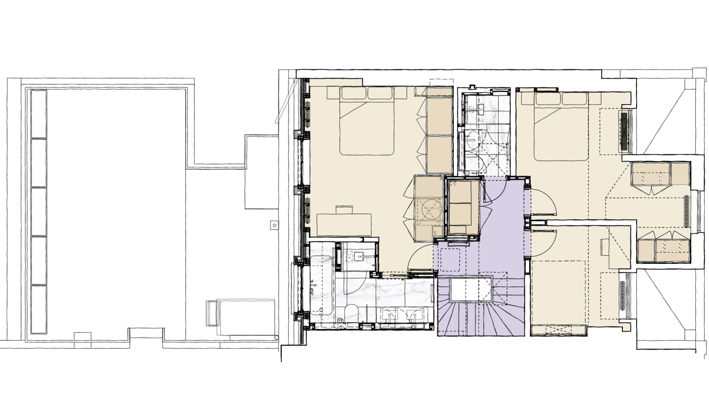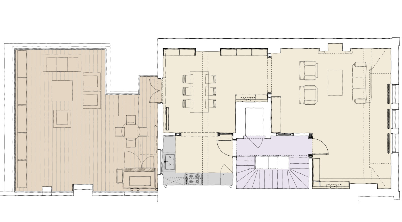 Our work included rigorous historic research into the development and history of the building in order to preserve elements belonging to the original footprint and interior whilst at the same time removing and adjusting non-original walls and features in order to create the desired spaces and effect.