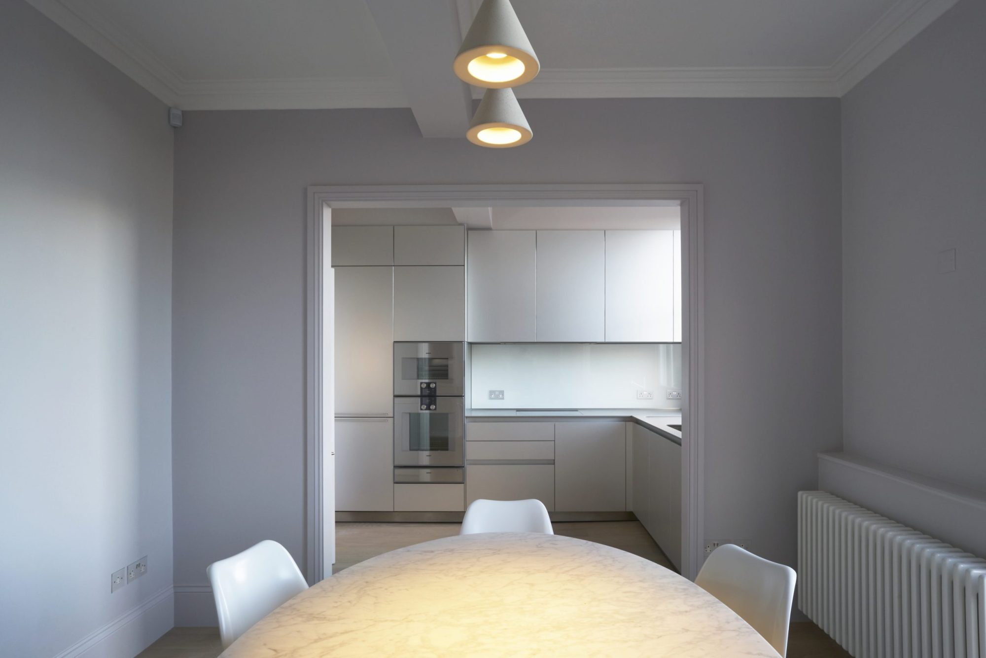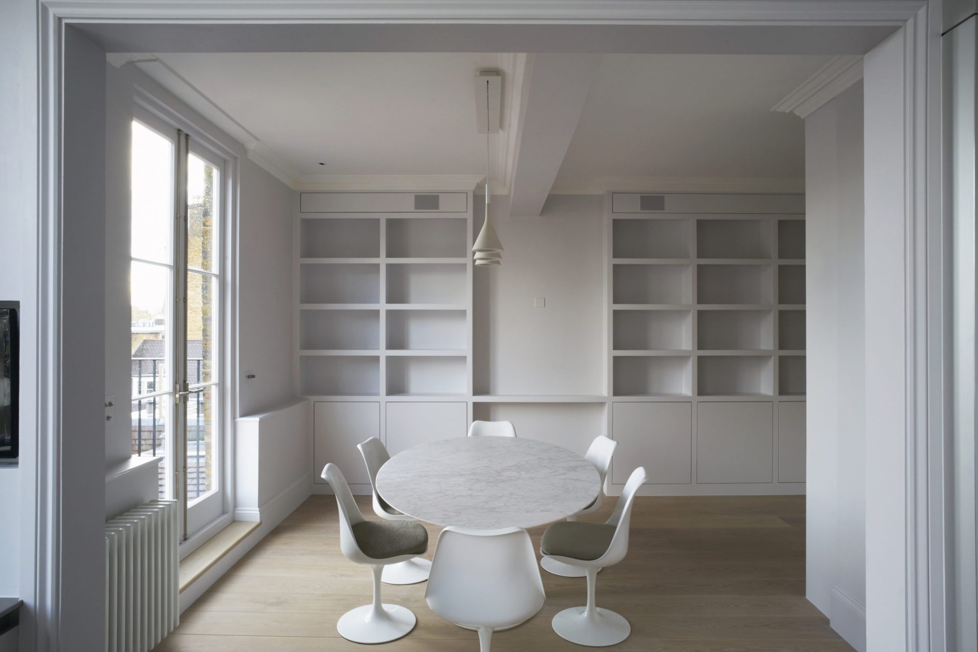 Our project was for the substantial but sensitive updating, upgrading and enhancement of the fabric and amenities of the maisonette and the transformation of the existing layout into an open, contemporary, stripped-back interior that act as a neutral backdrop to our client’s extensive collection of eighteenth century art, books and furniture.