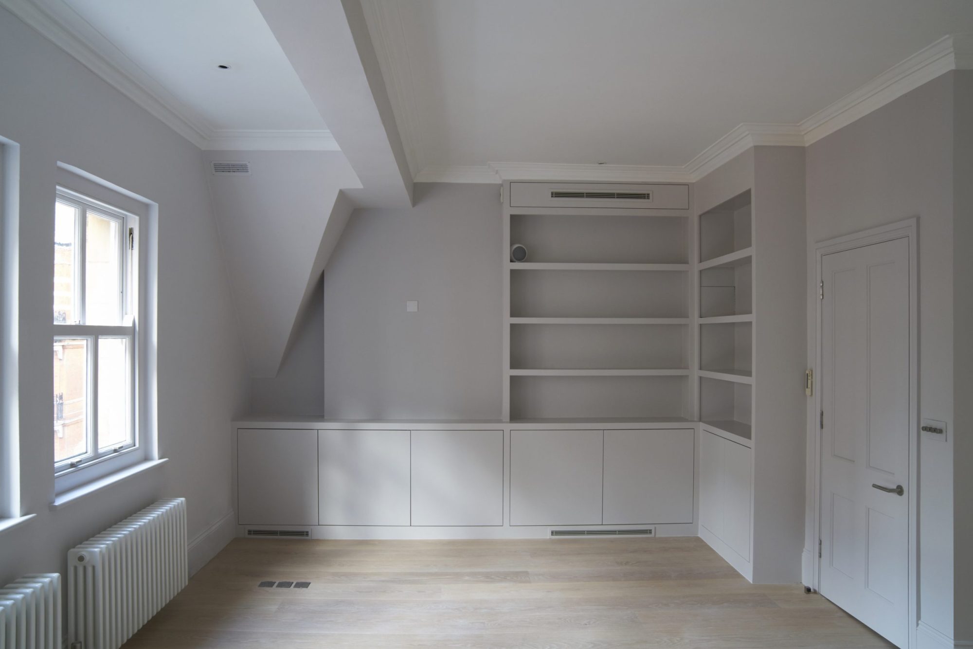 Substantial but sensitive alterations to Grade II listed penthouse flat for an art collector client.
