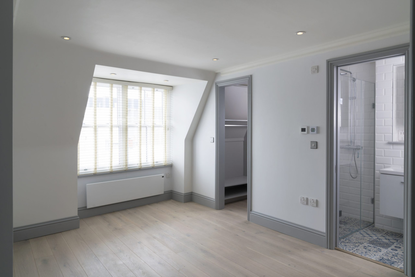 Working with a modest budget, the details and finishes for each flat create a contemporary, high quality design that makes subtle references to period details appropriate to the original building.