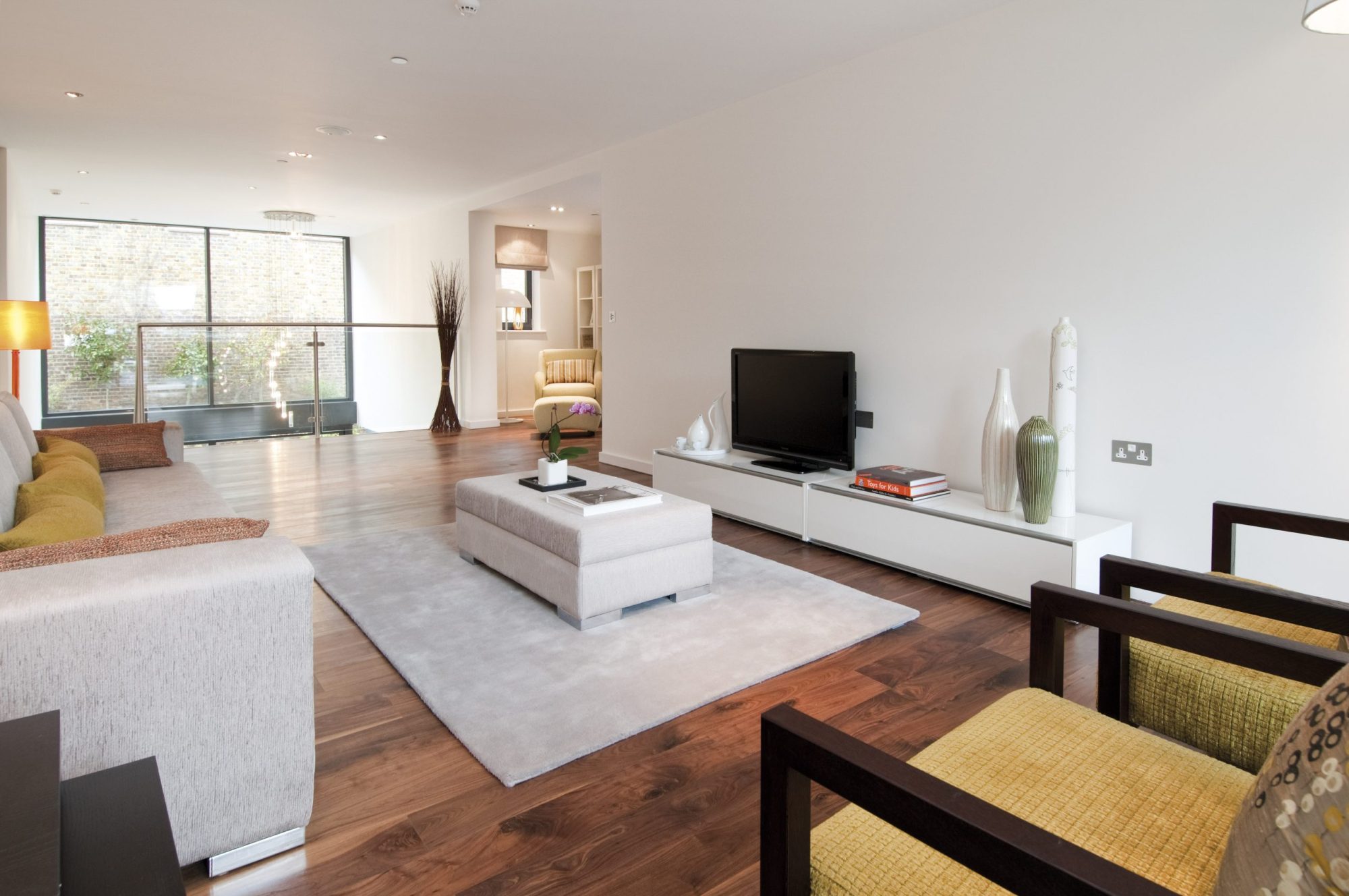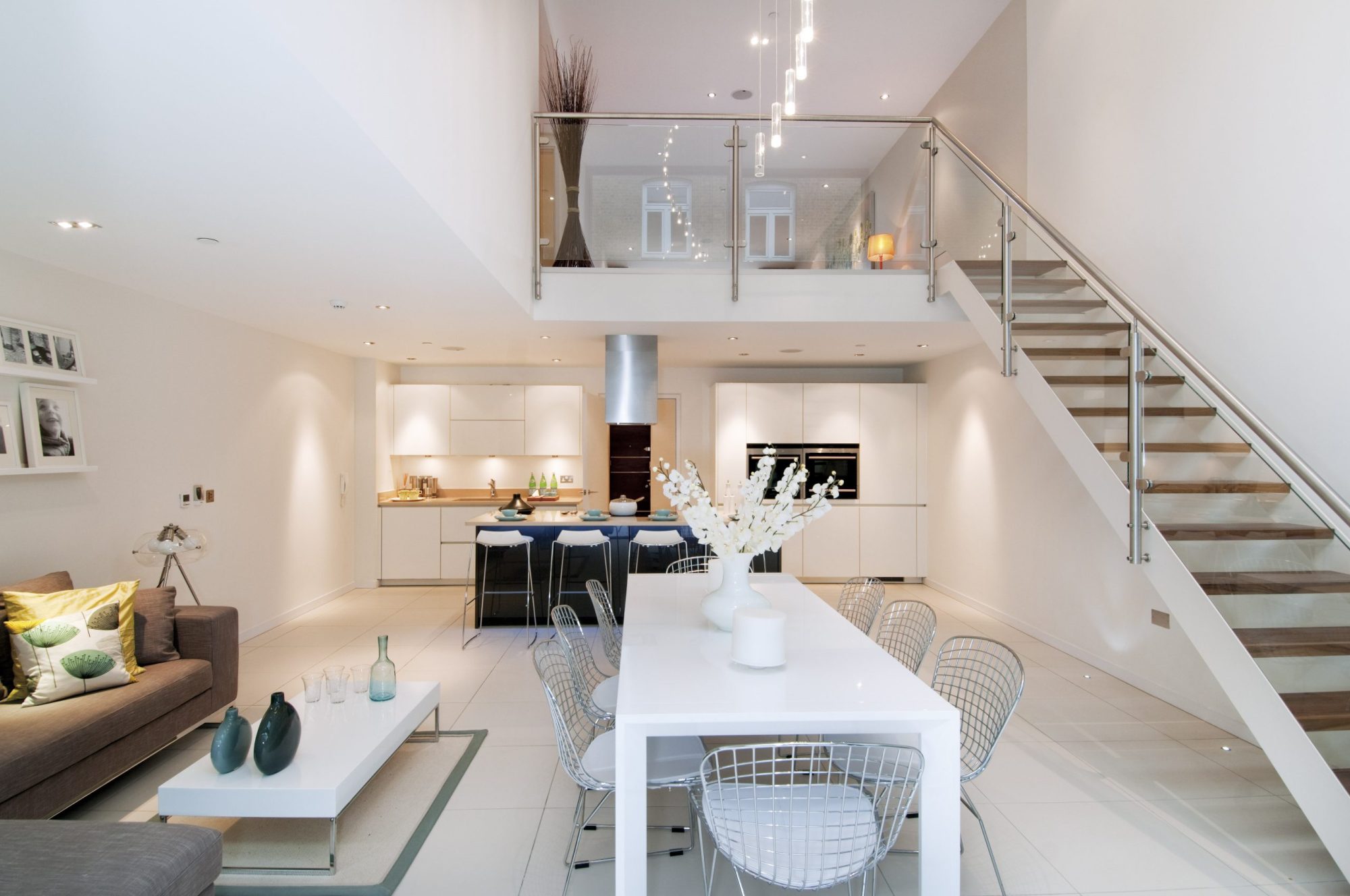 Internally the houses are modern and spacious, with large ‘through’ sitting rooms at upper ground floor level culminating in a double-height kitchen/dining area opening onto the gardens at the rear. The master bedrooms have private terraces to the rear.
