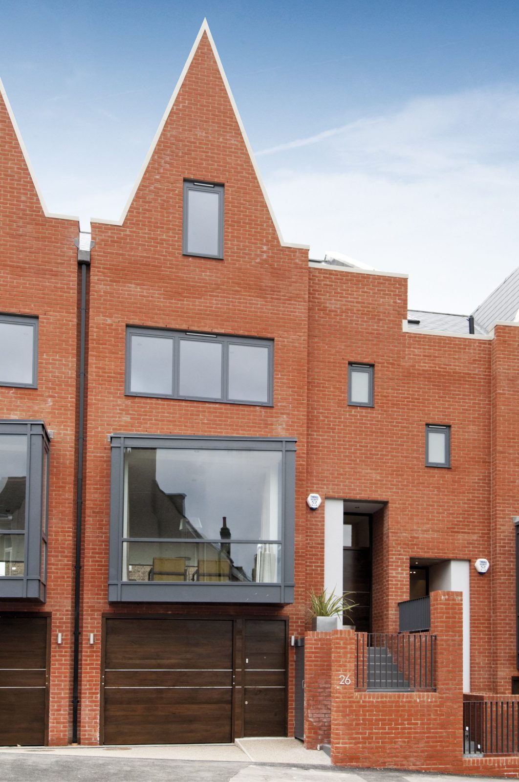 Contemporary detailing is applied to give the houses a distinctive modern ‘edge’, including the projecting glazed bays, and internal feature staircases.