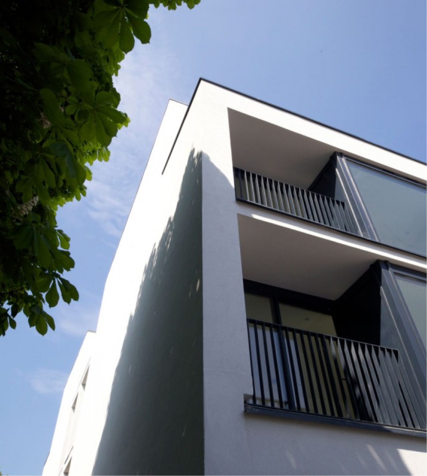 Mixed use development with residential apartments above office space on a tricky urban site.