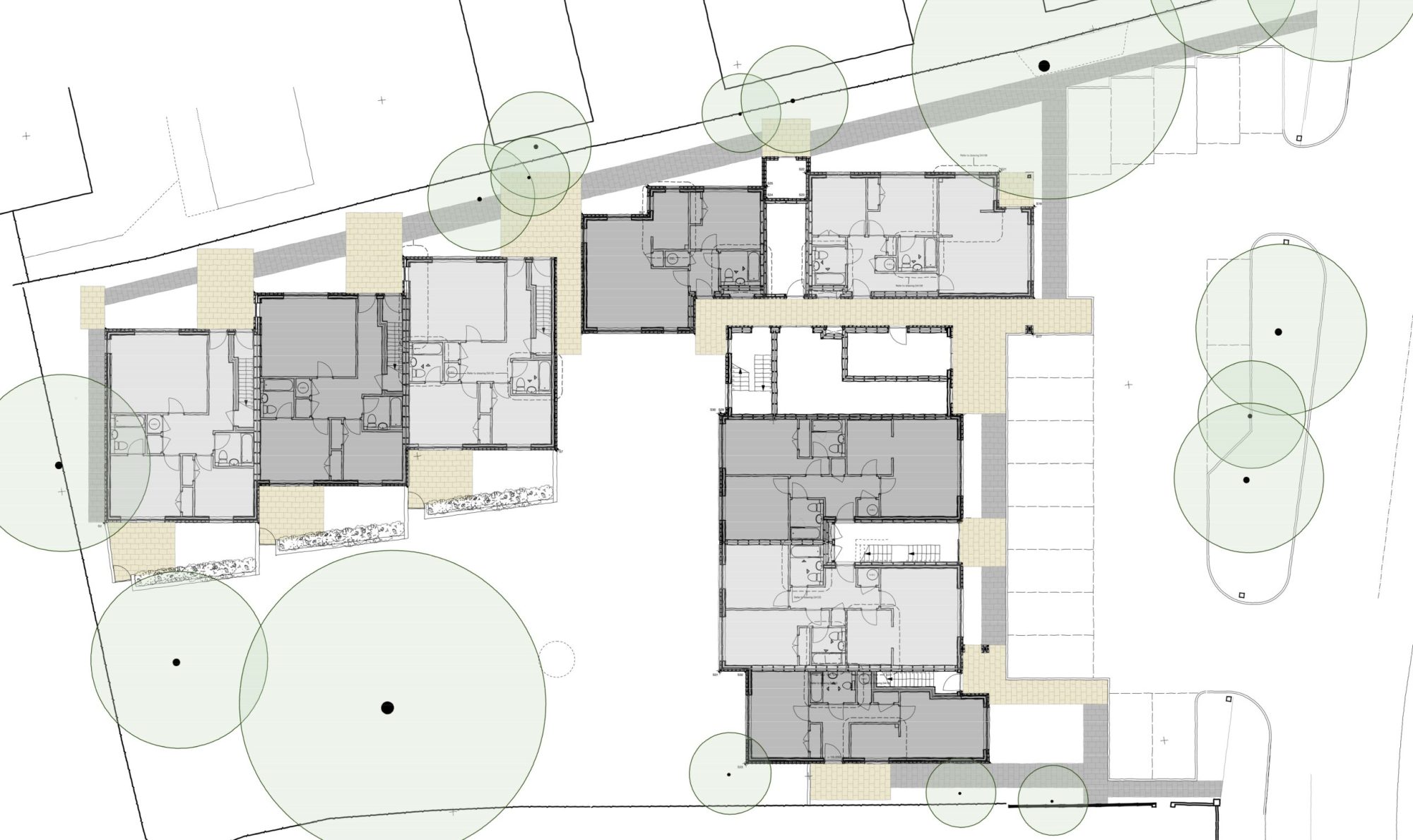 The design is arranged as a mixture of two and three-storey blocks to the south and west of the site, enclosing the existing gardens for the new residents and protecting the mature trees already on site.