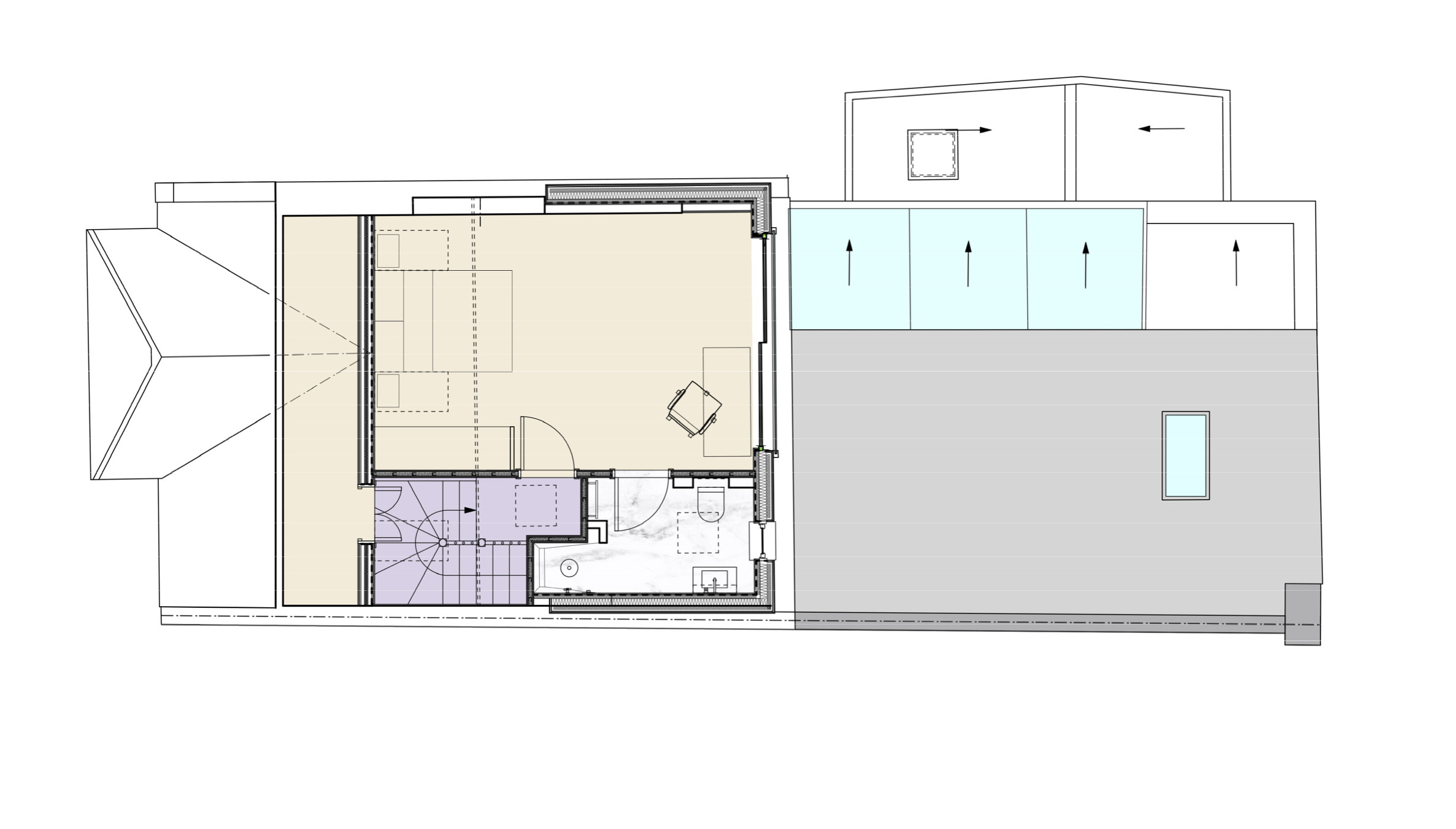 Our design proposals altered and extended the internal layout at ground floor level by partially infilling the gap to the side of the property and adding a glazed rear extension to improve outlook and access to the rear garden.