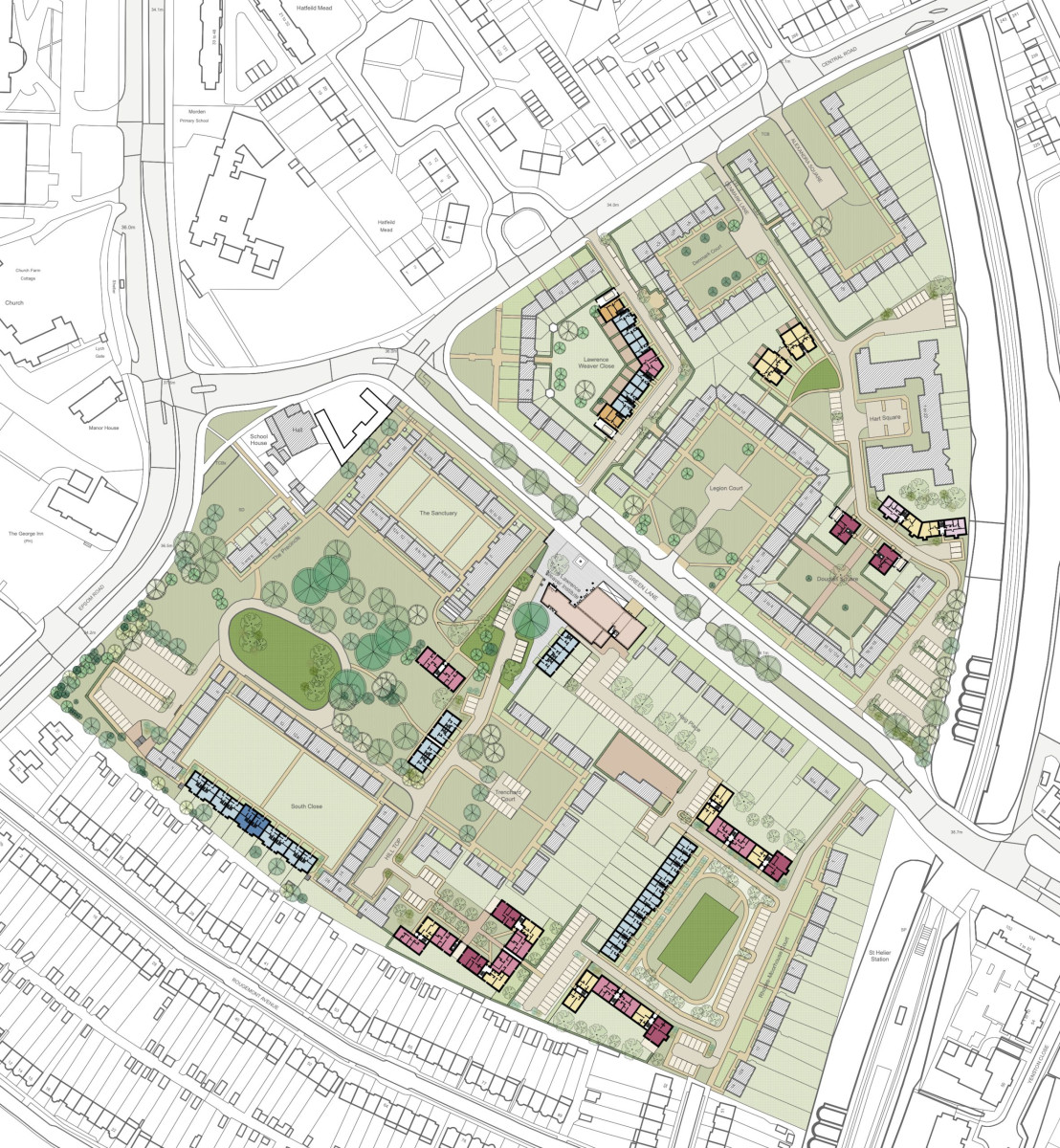 Haines Phillips Architects were appointed by Haig Housing Trust to carry out a Feasibility Study to explore the development potential of their existing estate at Morden.