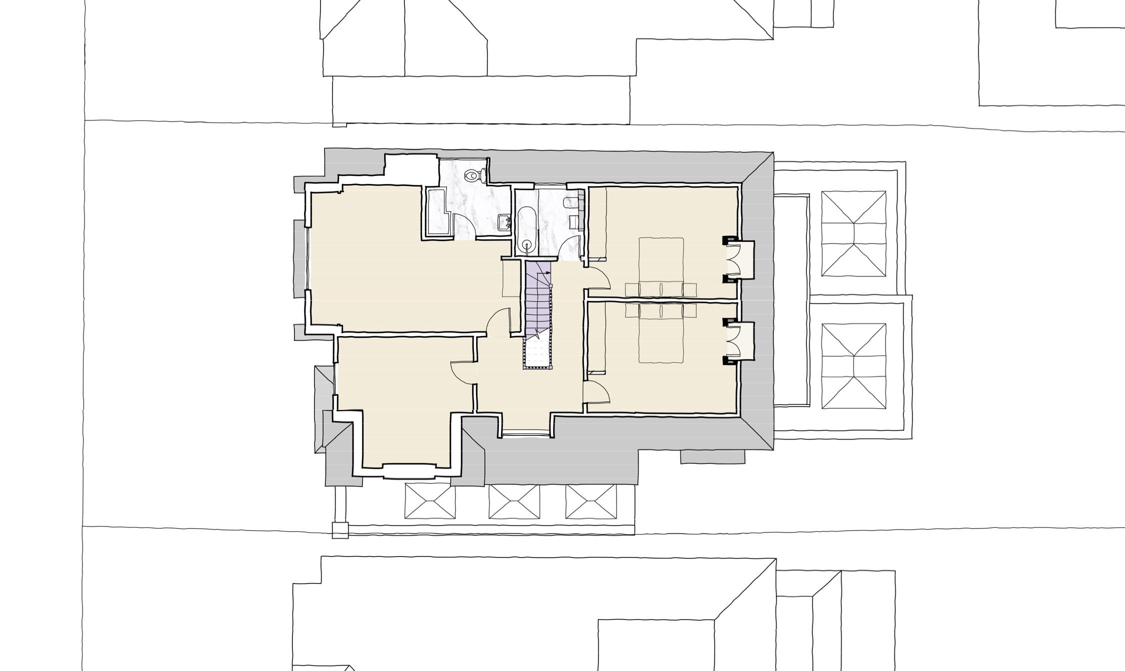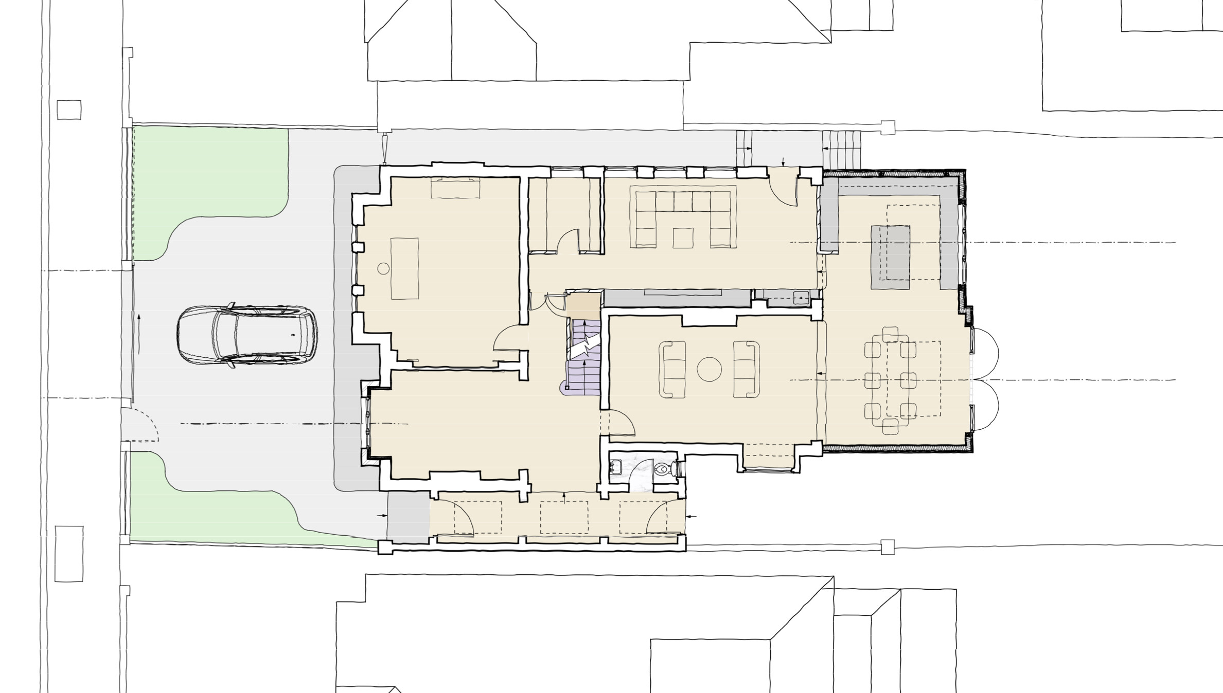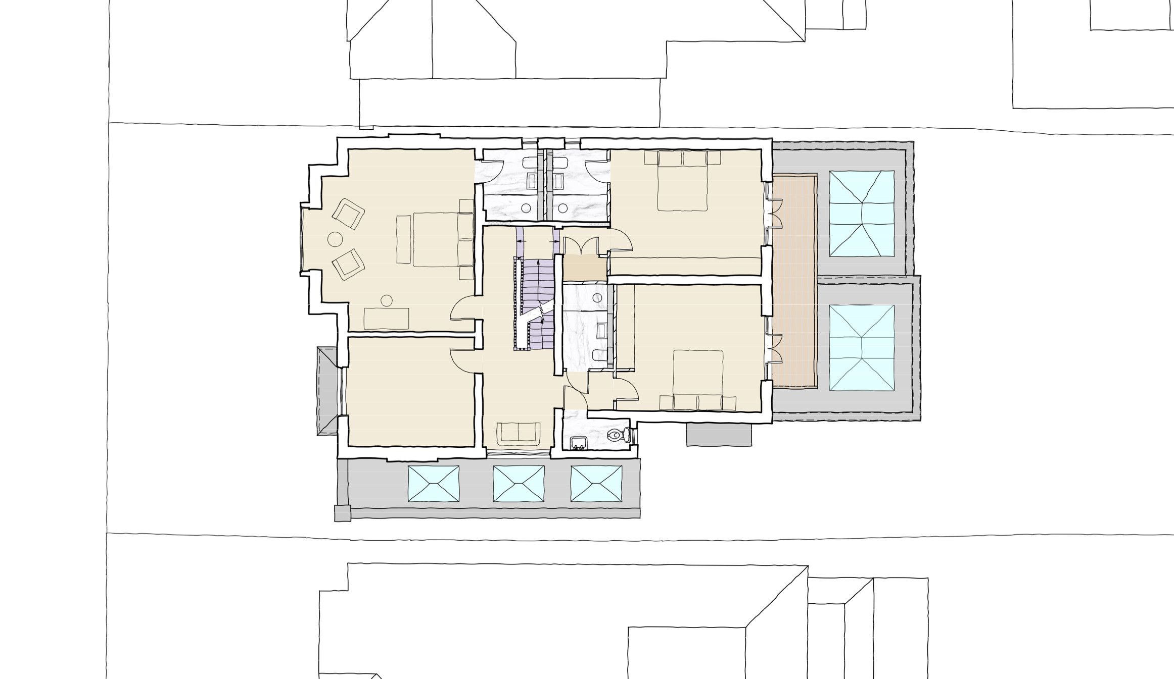 Our proposals, for which we obtained planning consent and prepared detailed technical design information, were to reorganise and expand the house to better suit the contemporary lifestyle of our clients large family.
