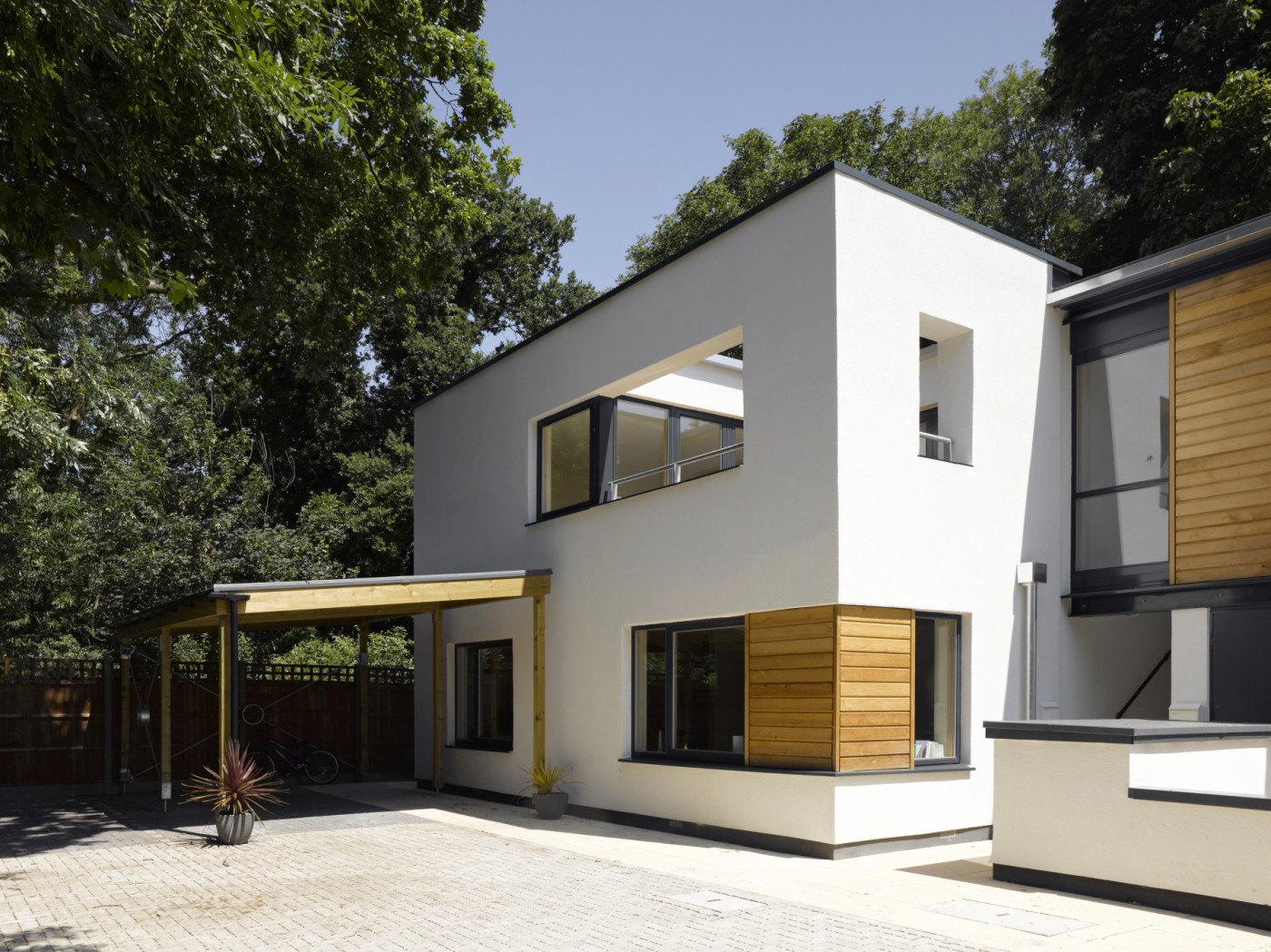 Materials were specified to continue the language of a previous phase of development and to allow long-life and low-maintenance. Load-bearing blockwork construction provides good thermal mass, with a highly insulated external render system providing the exterior finish, complemented with Western Red Cedar panelling. Aluminium clad timber windows avoid the need for external redecoration.