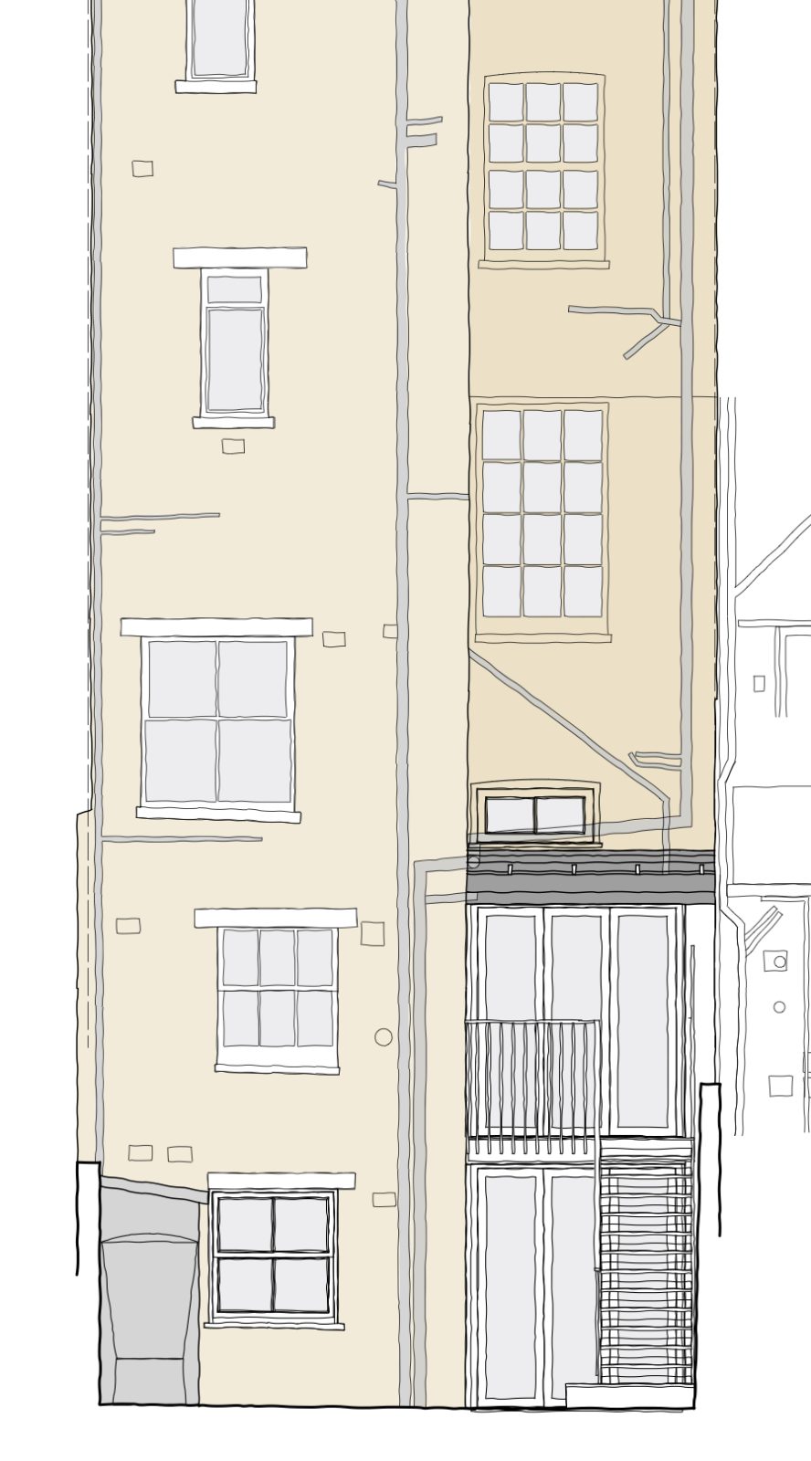 The element of our design proposal to achieve this was to insert a two storey rear infill extension to increase floor area and to improve the access and connection to the rear garden.
