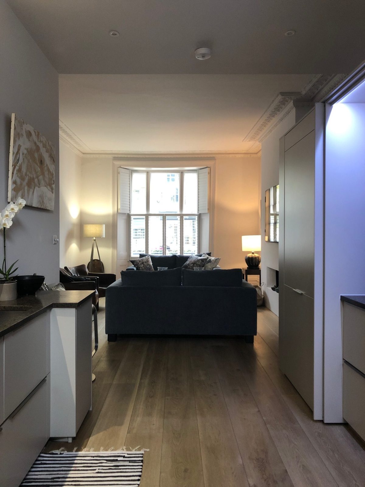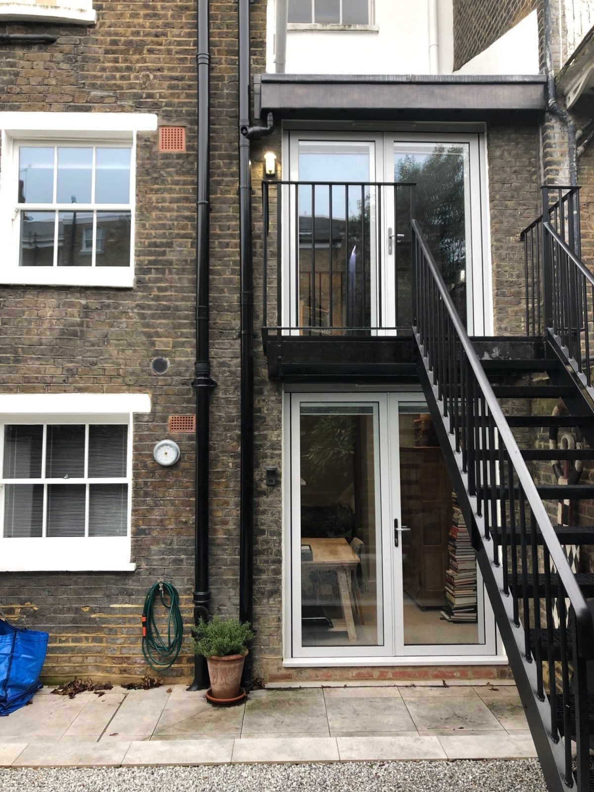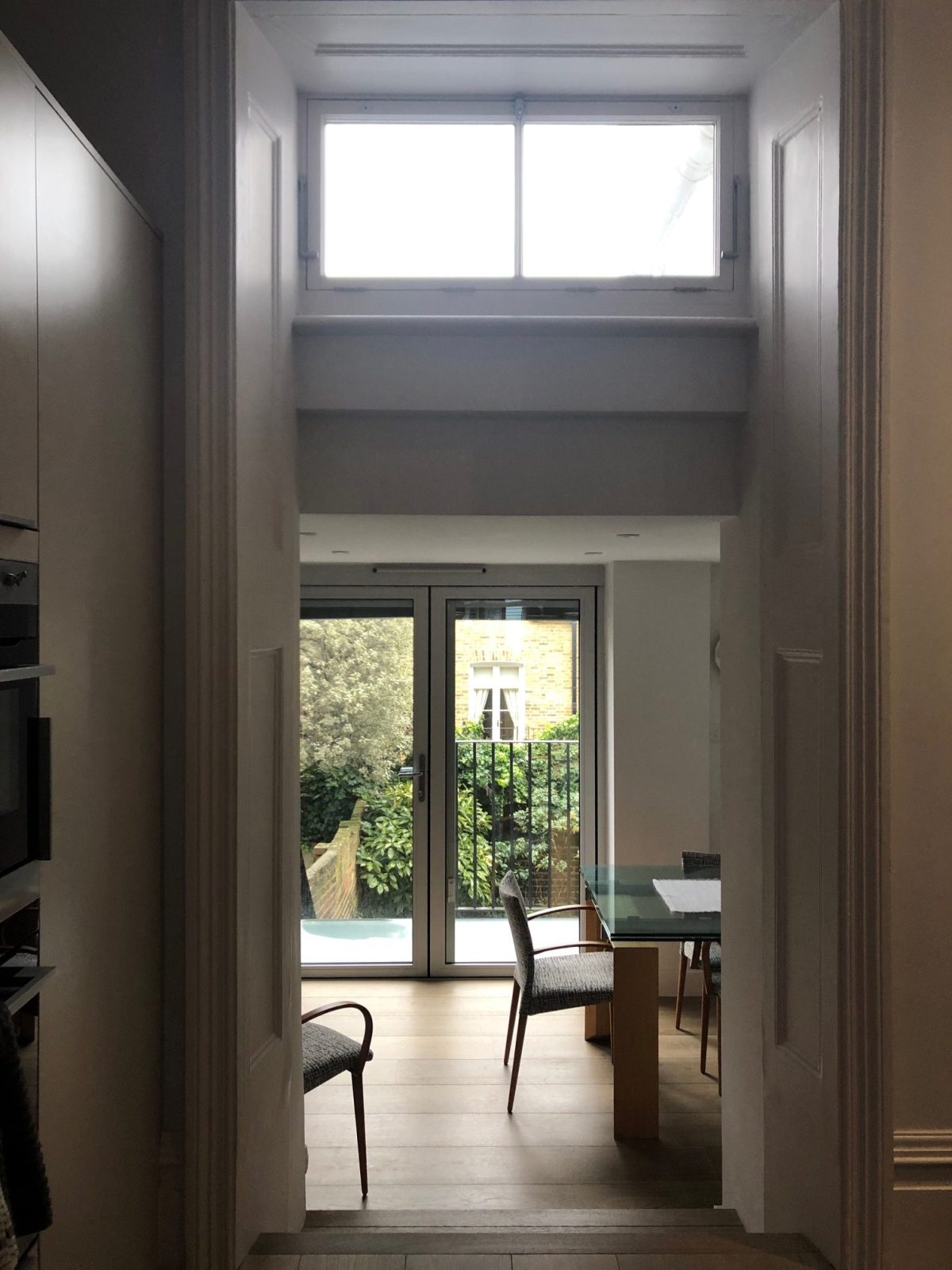 The lower ground floor spaces were reorganised to include two good size double bedrooms, two bathrooms, ample storage space and a study area facing out on to the rear garden patio.