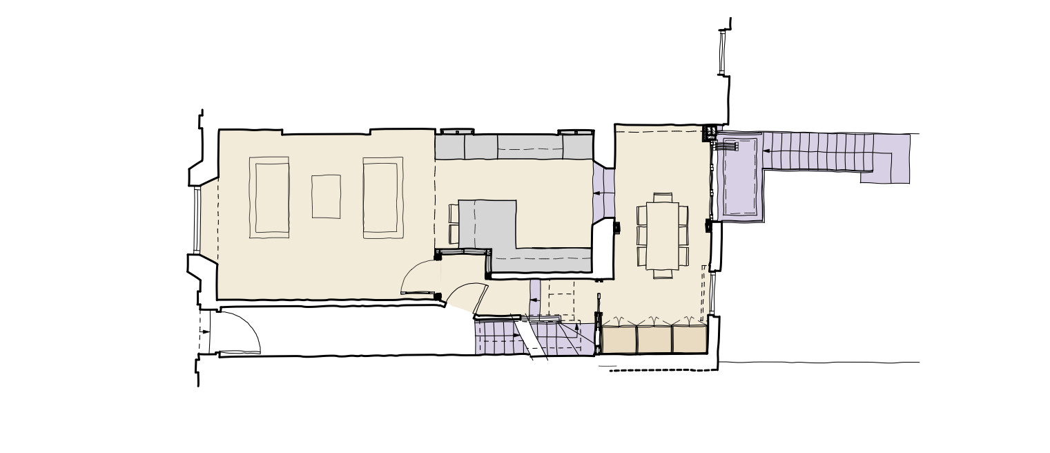 The element of our design proposal to achieve this was to insert a two storey rear infill extension to increase floor area and to improve the access and connection to the rear garden.