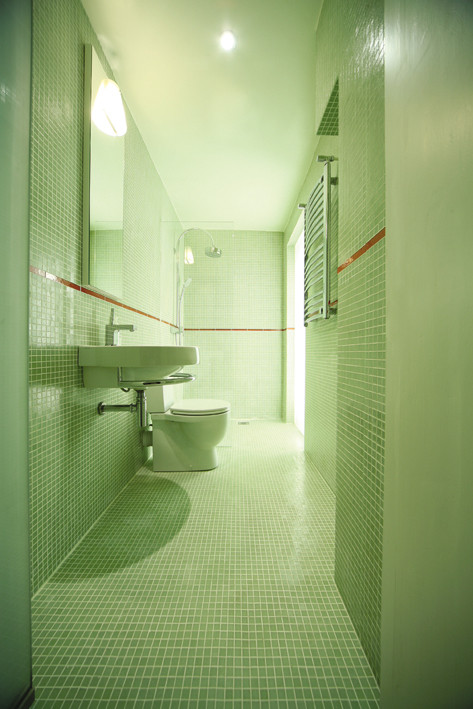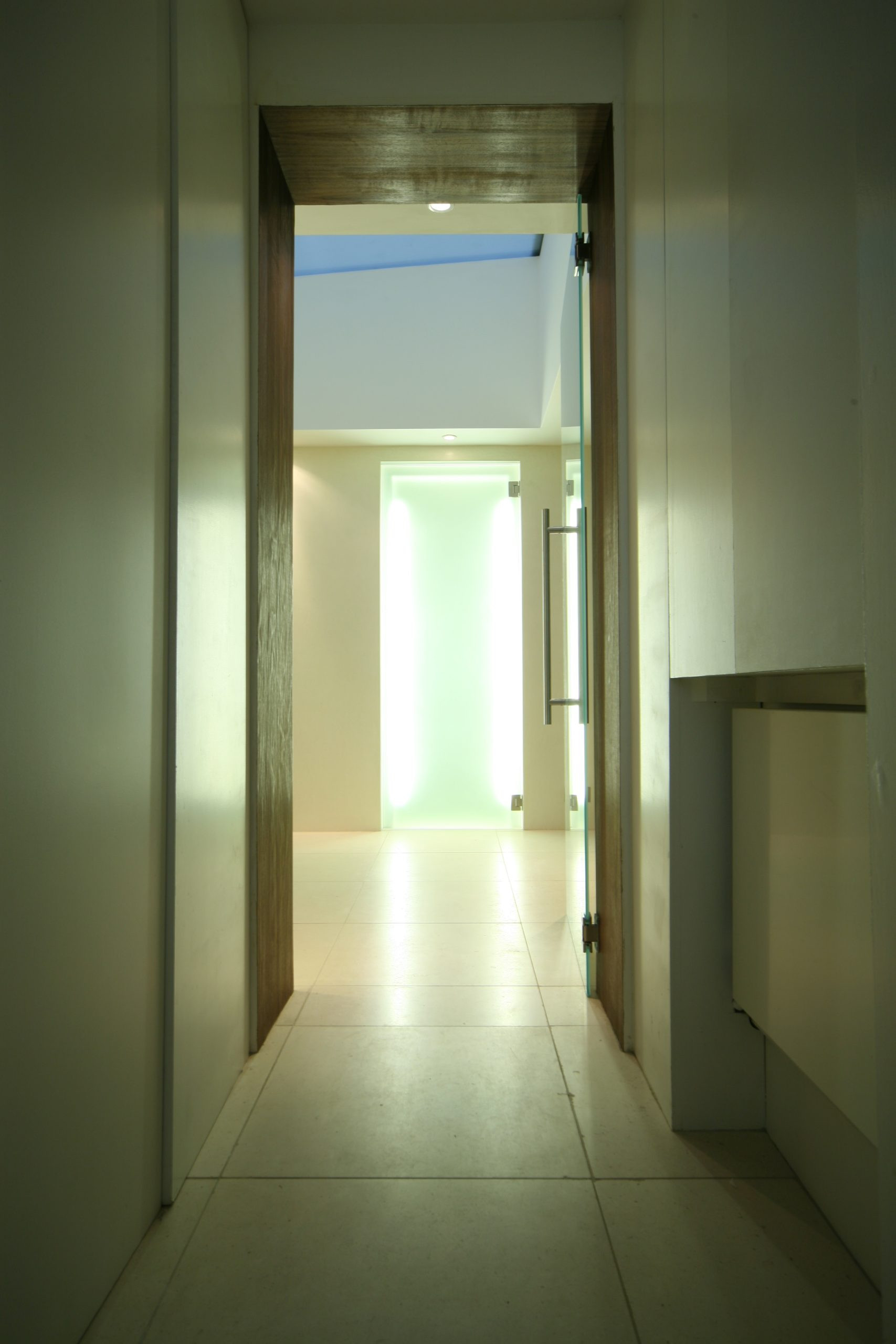 This project comprised the rearrangement of the flat in a contemporary style and the insertion of a large structural glass skylight that transforms the previously gloomy and cluttered spaces of the entrance hall, corridor, kitchen and bathrooms.