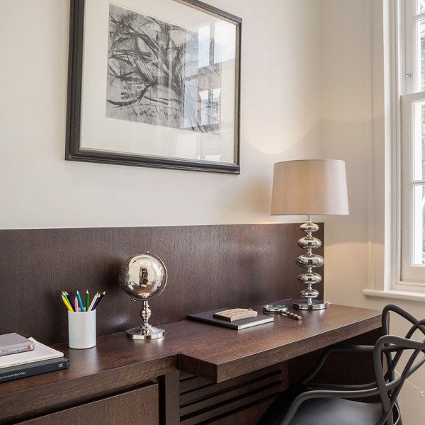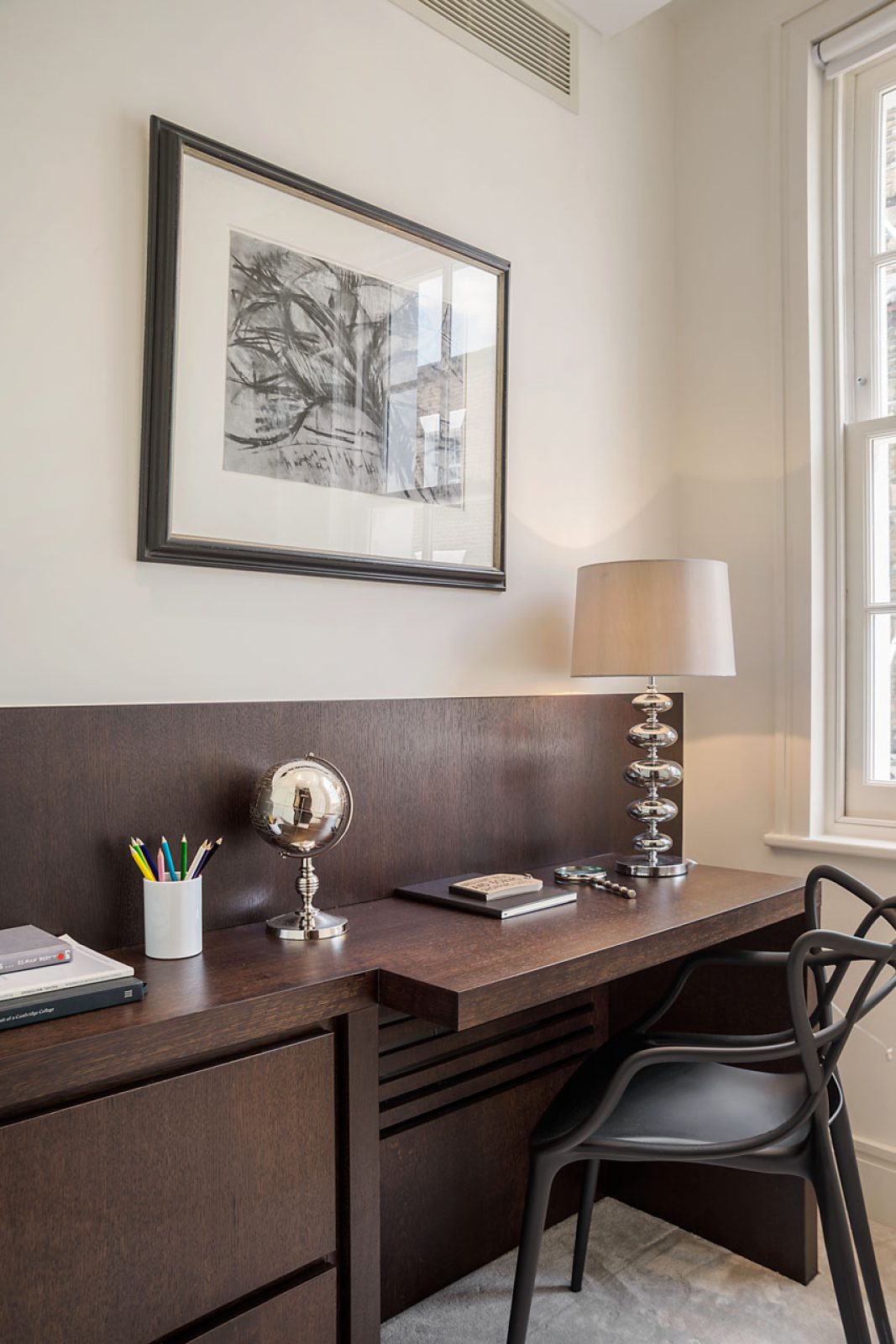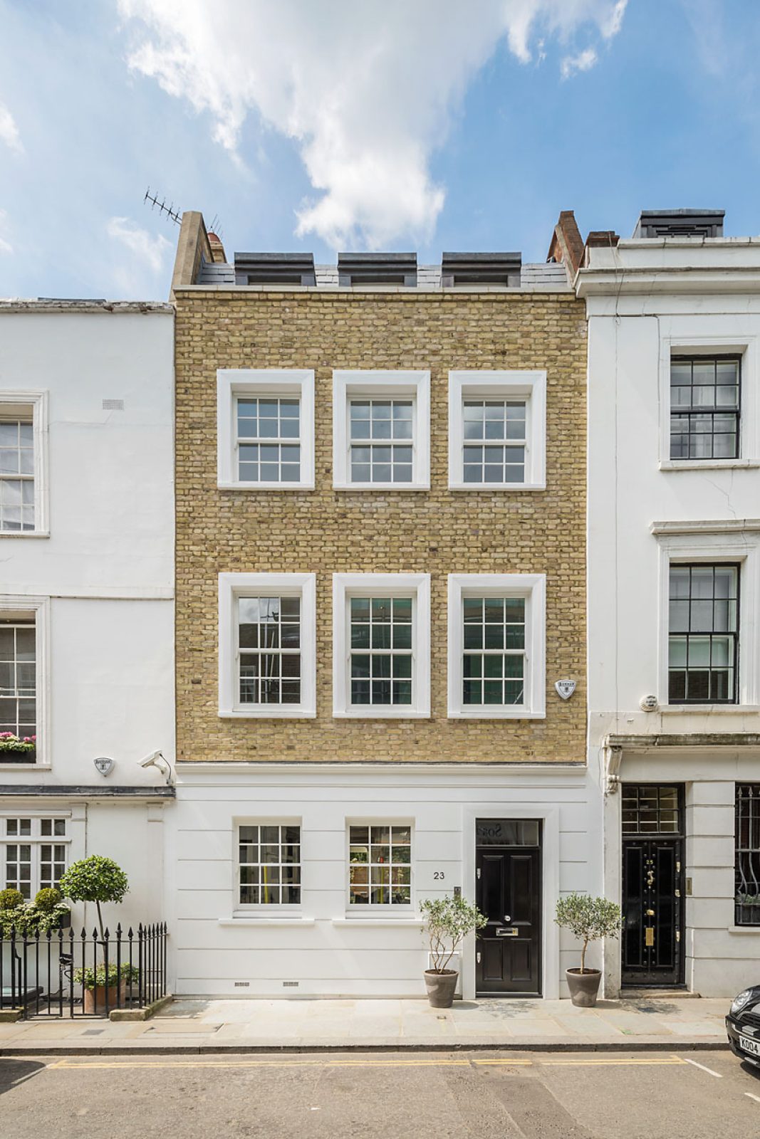 The elevations were conceived to blend in harmoniously with the surrounding buildings, a mixture of brick and stucco render façade townhouses. The internal layout, with an area of 3,150 square feet, was developed to maximise light and usable space in the narrow plot.