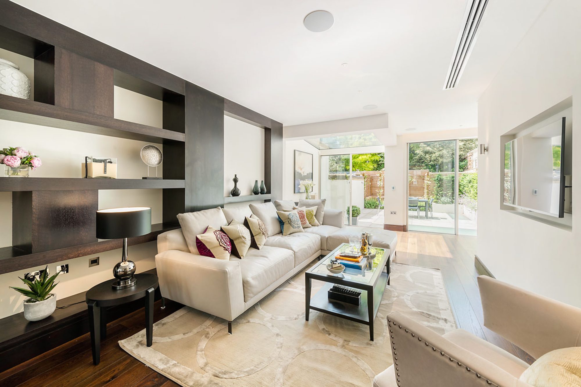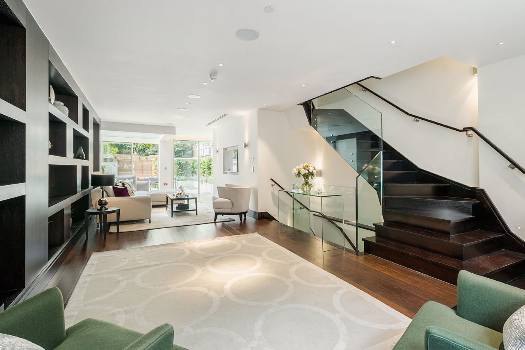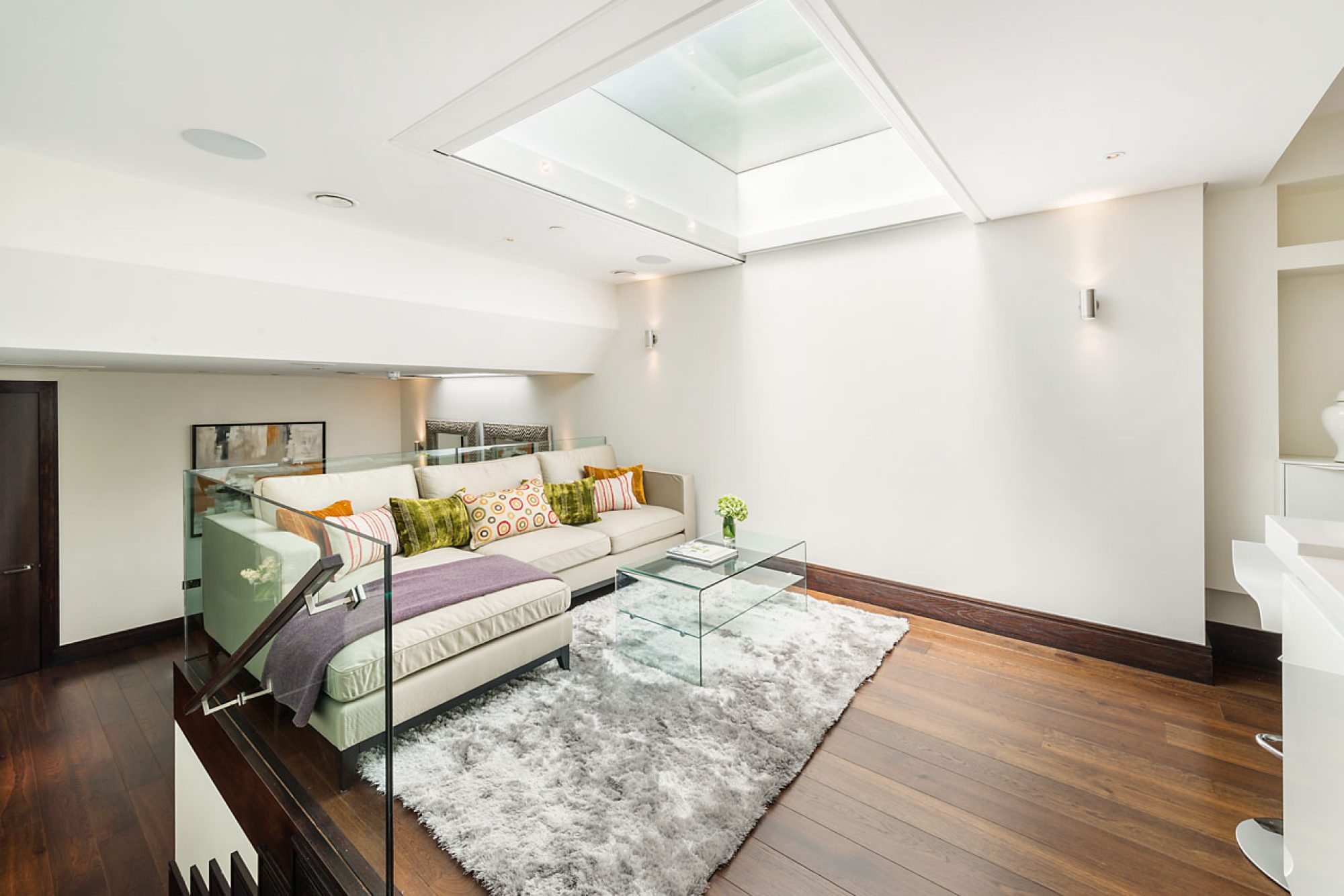 Light is provided via large walk-on rooflights in the floor of the garden patio above.