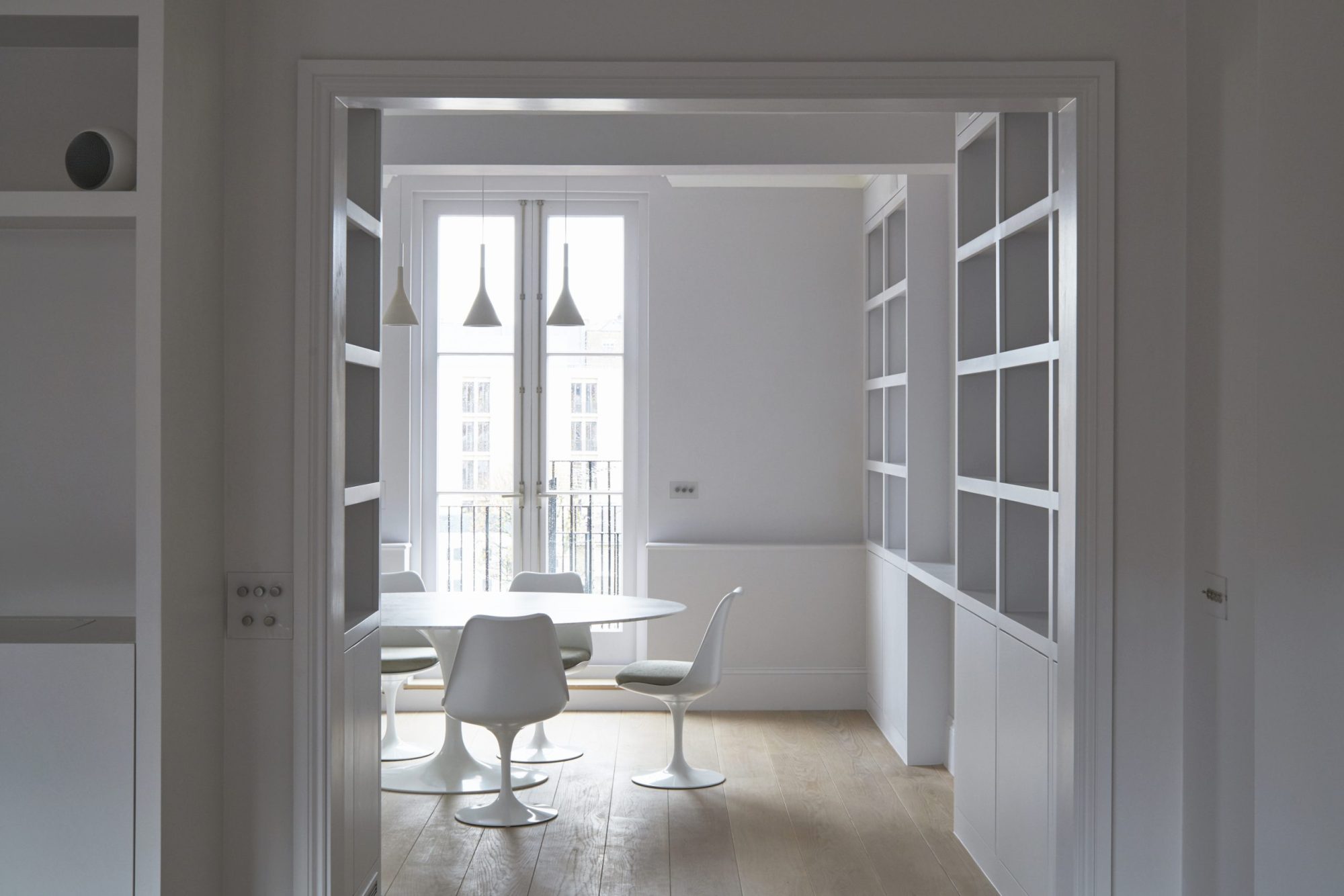 Our project was for the substantial but sensitive updating, upgrading and enhancement of the fabric and amenities of the maisonette and the transformation of the existing layout into an open, contemporary, stripped-back interior that act as a neutral backdrop to our client’s extensive collection of eighteenth century art, books and furniture.