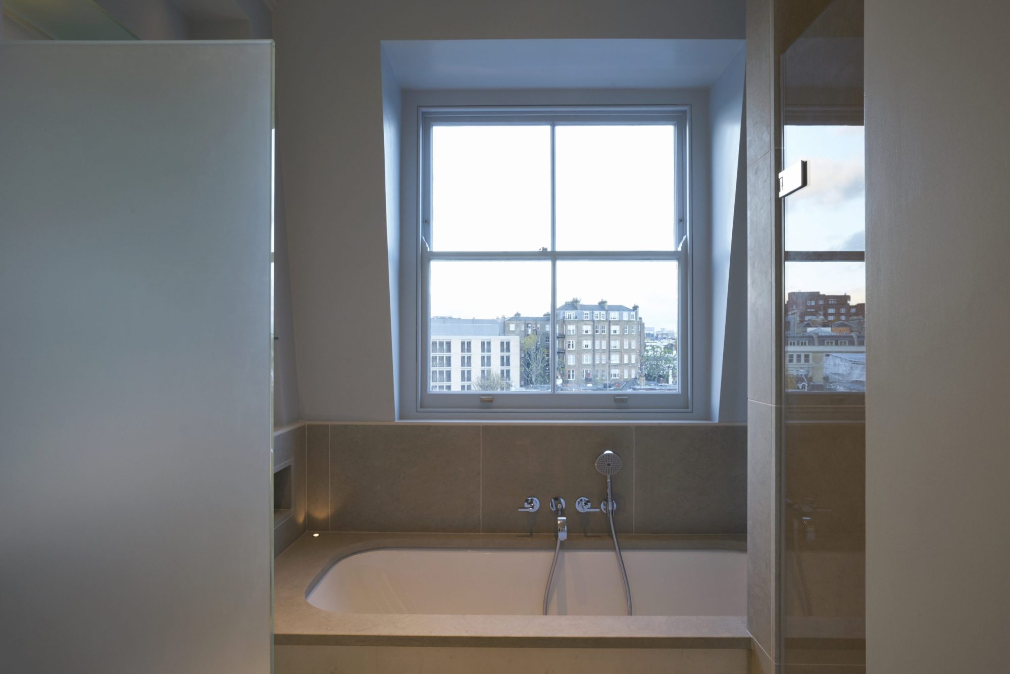 The external alterations included the reconstruction of an existing mansard roof to an adjusted profile that provided additional headroom and floor area in the attic floor. We also reconfigured and design the landscaping of a third floor roof terrace to make better use of the precious outdoor space.