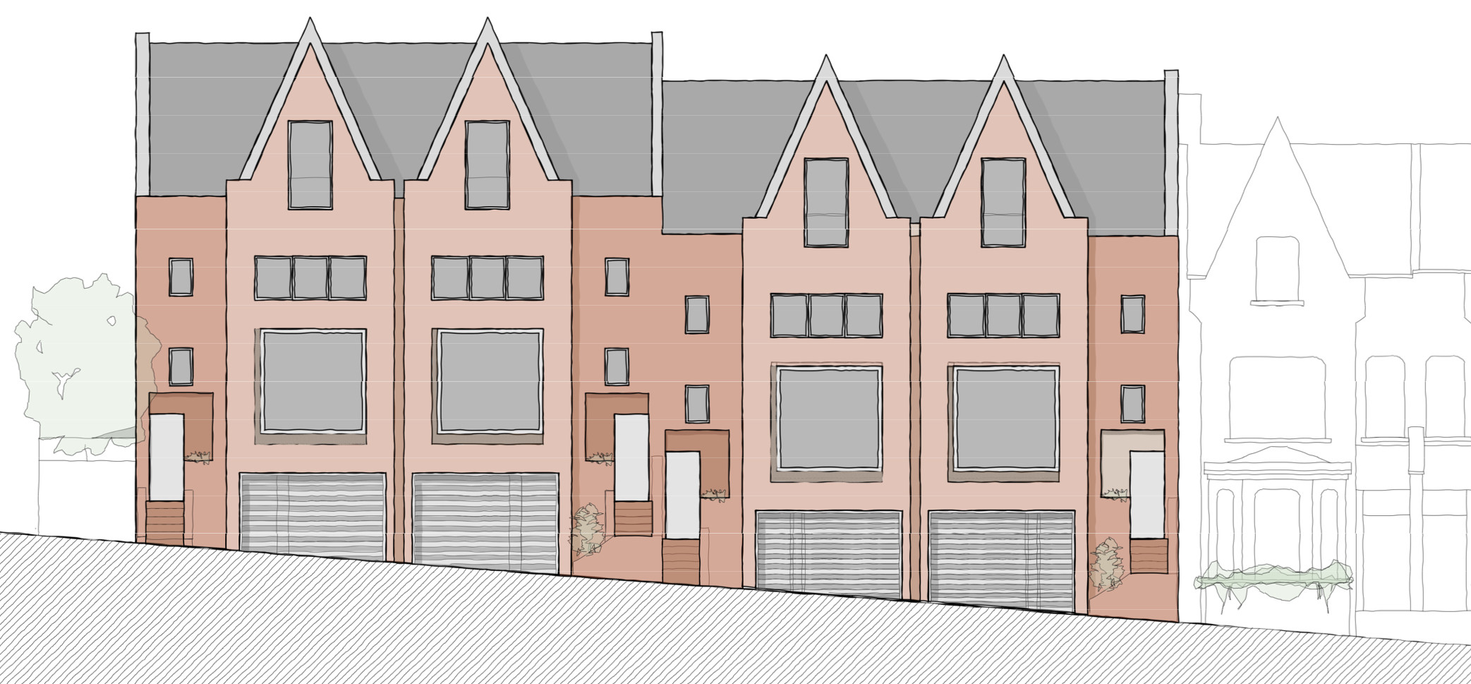 The site stands on the upper part of Crouch Hill. Our design of the new houses take advantage of views north towards Alexandra Palace with carefully located roof windows and angled projecting ‘bay’ windows at upper ground floor level.