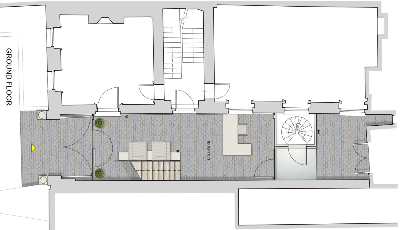 The building is currently used as office accommodation to house the London headquarters of an international company, having been converted to offices in the 20th century. The cellular nature of the internal spaces along with the limited potential for alterations or extensions has imposed prohibitive restrictions on the use of the accommodation including a lack of an adequate reception area and a suitable conference/meeting room.