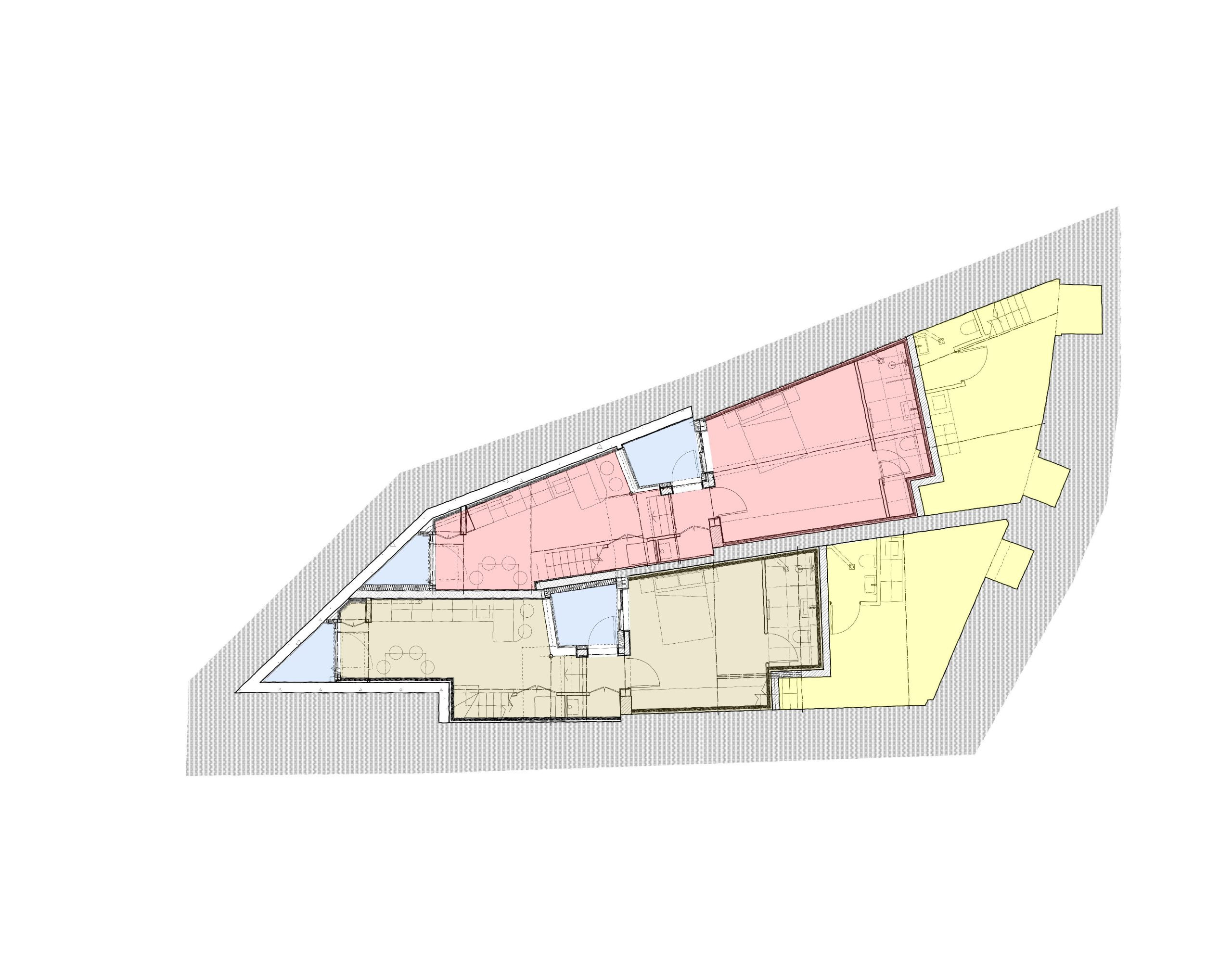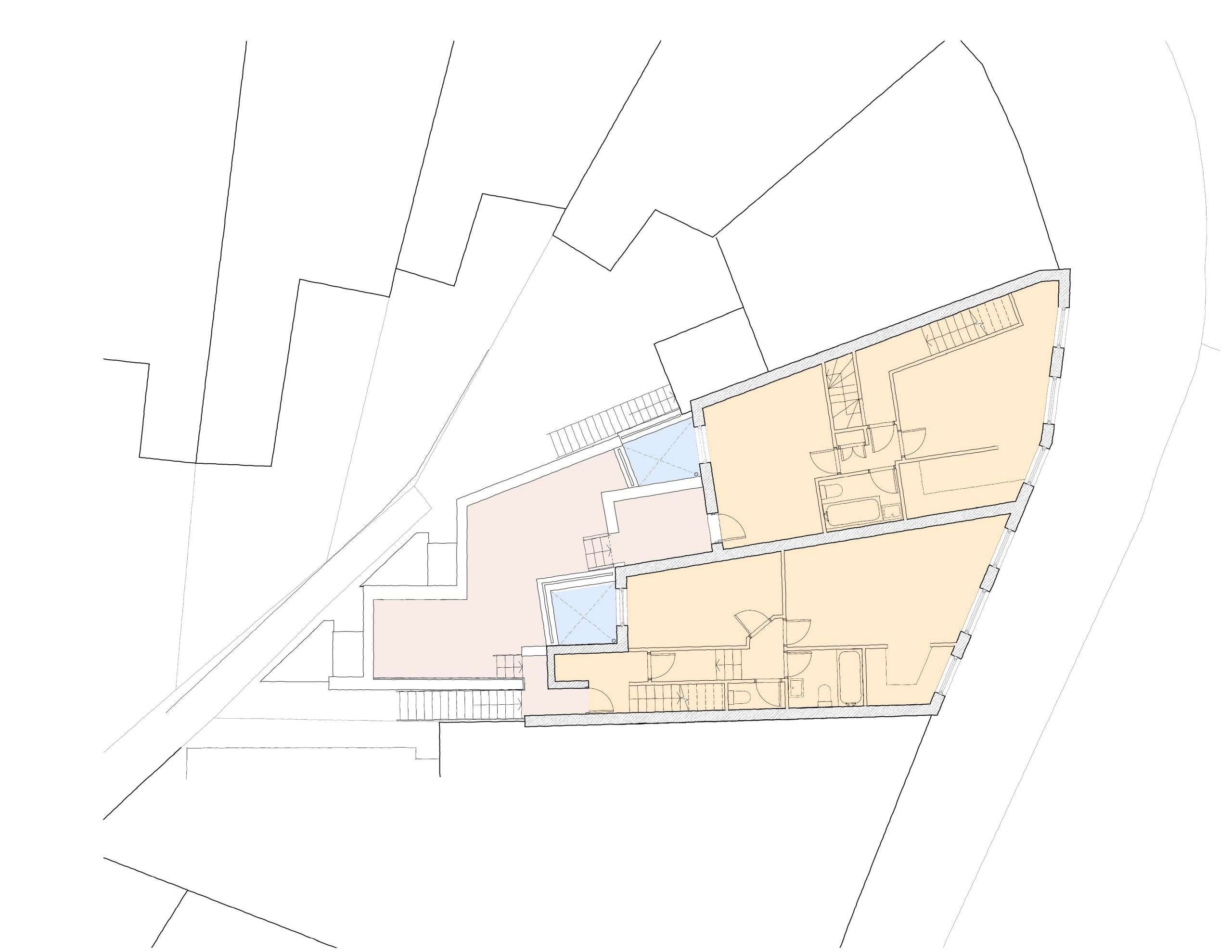 Our project at Topsfield Parade is a development of two properties which form part of a horseshoe shaped terrace in Crouch End, London N8. The existing buildings have retail spaces at ground and basement facing the shopping street frontage and flats on the upper floors above. To the rear of the properties is a narrow semi-dilapidated mews laneway which provides access to many of the flats over.
